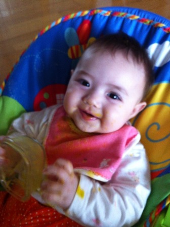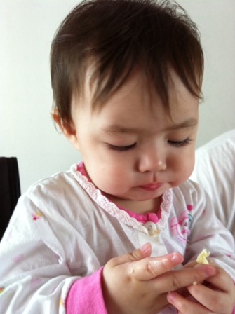 Rina's 100 Tage-Fest am 2. April 2012, "Verarbeitung" der Opfergaben als Frühstück mit Familie |
