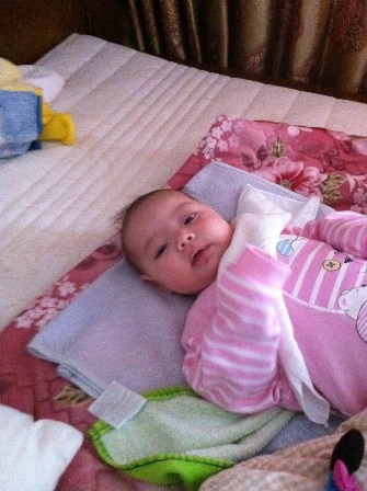 Rina's 100 Tage-Fest am 2. April 2012, Zweiter Gabentisch, diesmal mit ausgestattet mit Wünschen für die Zukunft und Geschenken von der Familie |